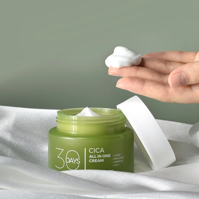 30 Days All-in-One Cica Cream is a soothing and repairing moisturizer that calms irritated skin, strengthens the skin barrier, and restores balance with Cica (Centella Asiatica).
