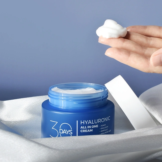 30 Days All-in-One Hyaluronic Cream is a deeply hydrating moisturizer that replenishes moisture, improves skin elasticity, and keeps the skin soft, plump, and refreshed.