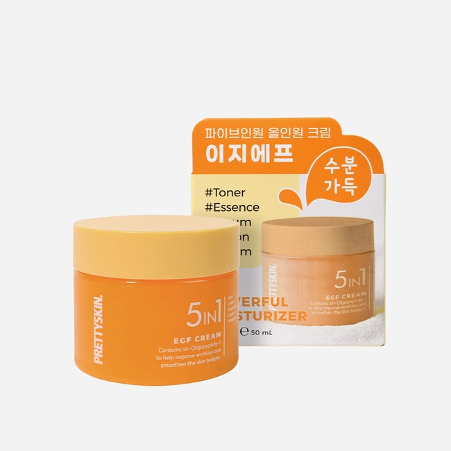 5-in-1 EGF Cream is a multifunctional anti-aging moisturizer that helps repair skin, improve elasticity, brighten tone, and deeply hydrate with Epidermal Growth Factor (EGF).