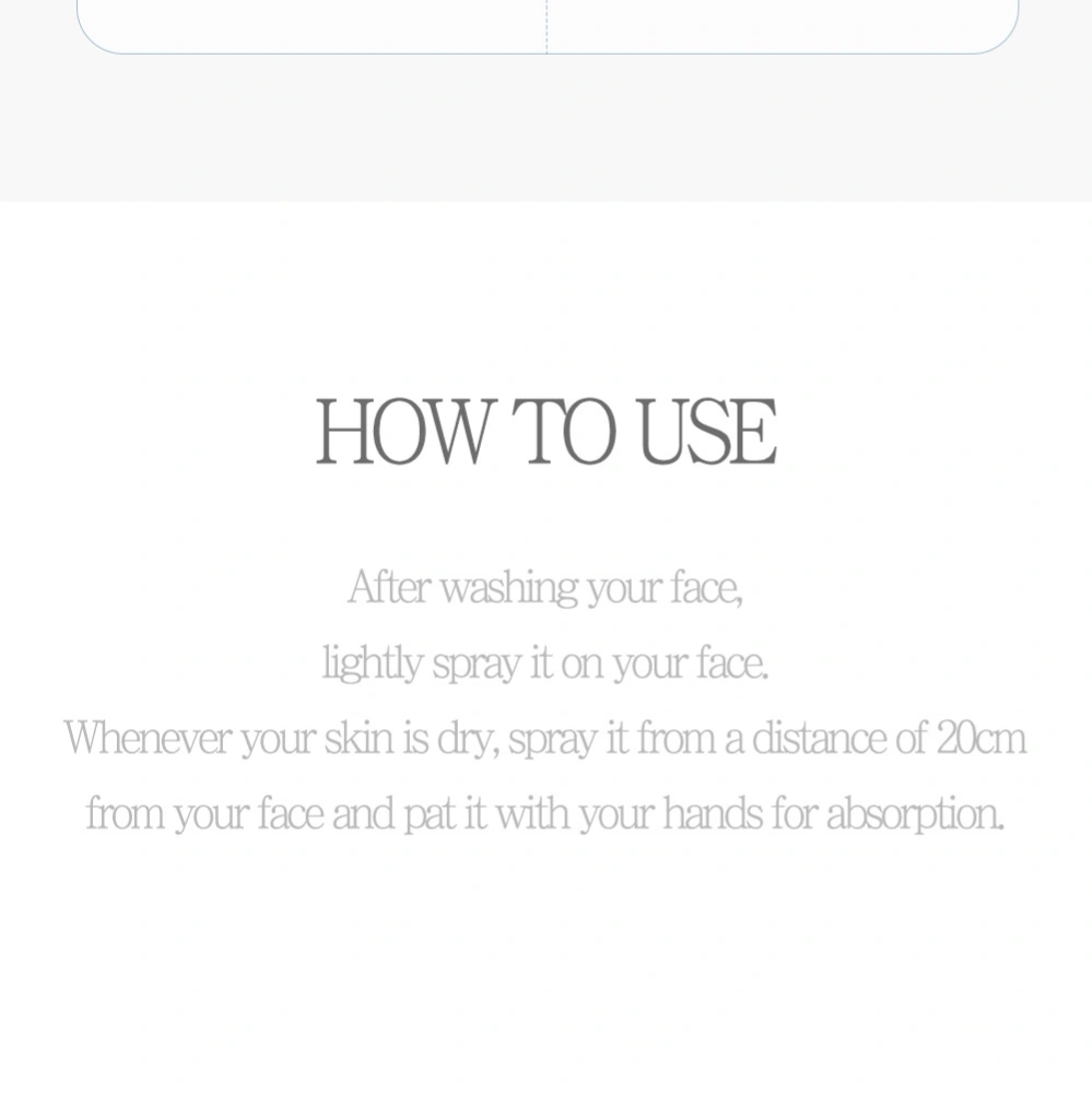 Usage: Hold the bottle 15–20 cm from the face and spray evenly. Pat gently to aid absorption. Can be used over makeup or anytime your skin needs a hydration boost.