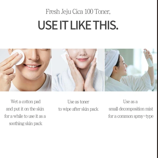 Jeju Cica Toner soothes, hydrates, and balances skin with calming centella asiatica extract sourced from Jeju Island. Lightweight and alcohol-free, it preps skin for moisture retention while strengthening the skin barrier—ideal for sensitive, irritated, or stressed skin.