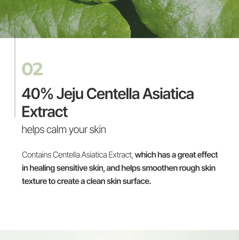 Centella Asiatica Extract (40%) – Soothes, heals, and reduces inflammation