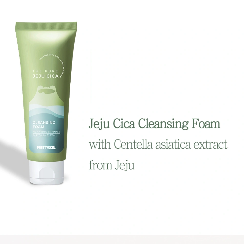 Jeju Cica Cleansing Foam gently purifies skin while calming irritation with centella asiatica extract from Jeju Island. Its rich, creamy foam removes impurities and makeup without stripping moisture, leaving skin clean, soothed, and balanced.