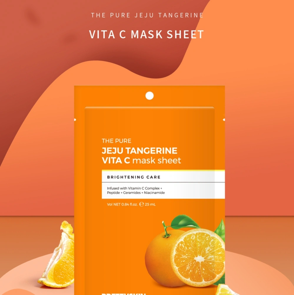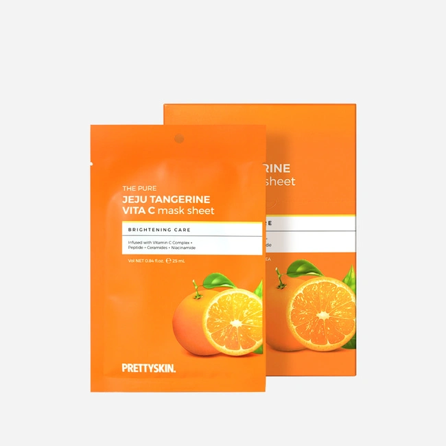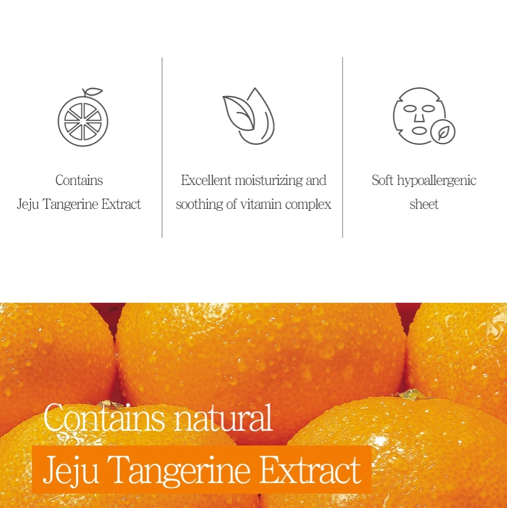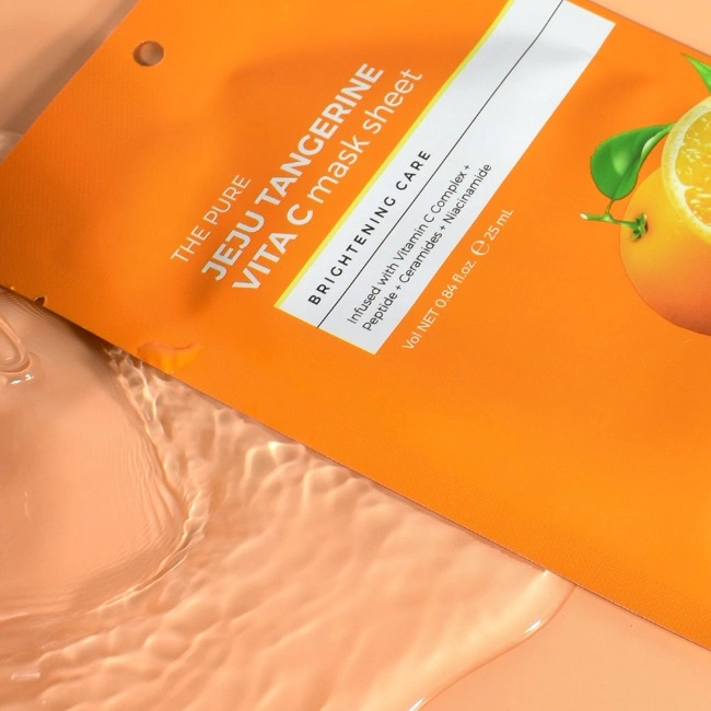 The Pure Jeju Tangerine Vita C Mask is a brightening and hydrating sheet mask infused with Pure Jeju tangerine extract, naturally rich in vitamin C and antioxidants. Designed to revive tired, dull skin, it helps improve skin tone, boost radiance, and restore moisture in a single use.