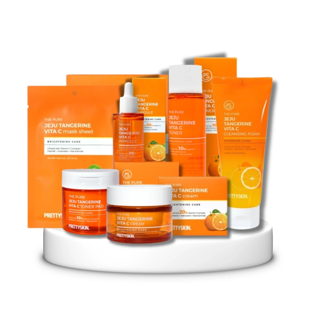 The Jeju Vita C Set is a complete radiance-enhancing skincare system infused with Vitamin C and Jeju Tangerine Extract, designed to brighten dull skin, reduce dark spots, and restore a healthy glow.