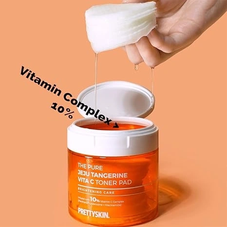 Brightening toner pads infused with Jeju Tangerine Extract and Vitamin C to gently exfoliate, hydrate, and improve skin radiance. Helps fade dark spots, even out skin tone, and leave the skin fresh and glowing.