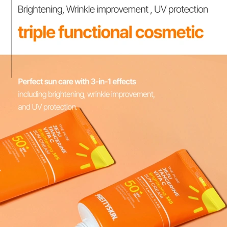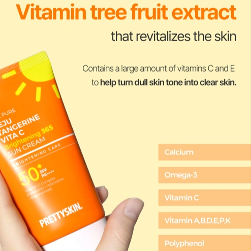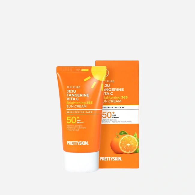 The Pure Jeju Vita C Brightening 365 Sun Cream is a multifunctional daily sunscreen designed to protect skin from harmful UV rays while enhancing natural radiance. Formulated with Pure Jeju tangerine extract and vitamin C, it delivers antioxidant care, helps improve dullness, and supports a brighter, more even skin tone.