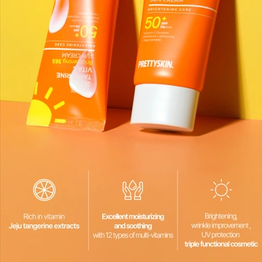 The Pure Jeju Vita C Brightening 365 Sun Cream provides daily broad-spectrum sun protection while brightening and hydrating skin. Enriched with Jeju tangerine extract and vitamin C, it helps protect, illuminate, and maintain a healthy complexion all year round.